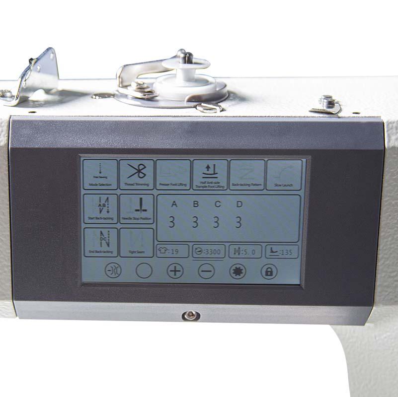 - Регулировка длины стежка с точностью до 0,1 мм обеспечивается шаговым мотором;